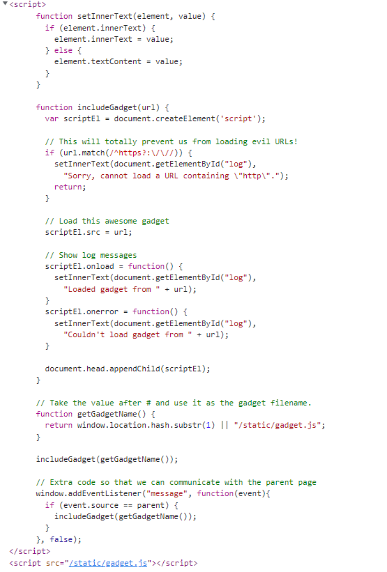 마지막에 오는 자바스크립트인 <script src="/static/gadget.js"></script> 부분을 보면