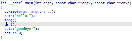 이 프로그램은 다음과 같이 foo함수와 bar함수를 호출한뒤 종료되는 프로그램입니다.