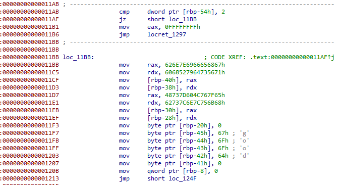 rbp-0x54 의 데이터와 2가 같으면 뭔가 이어지는 로직이 존재하고 아니면 바로 프로그램이 종료되는 로직으로 점프합니다.