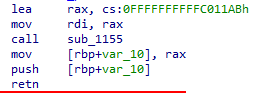 이 로직에서 넣은 rax값이 바로 main함수가 리턴할 주소라는것입니다.