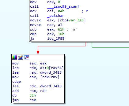 그리고 main함수에 있는 jmp rax로직이 무슨 로직인지 살펴보니