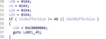 이 검사는 구조체의 크기가 48바이트와 같지 않으면 goto문을 통해서 함수가 실패로 끝나는것으로 파악됩니다.