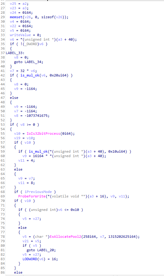 0이 아니라면 해당 값을 32와 곱한뒤 구조체의 다른 필드와 함께 ProbeForWrite함수에 매개변수로 전달됩니다.
