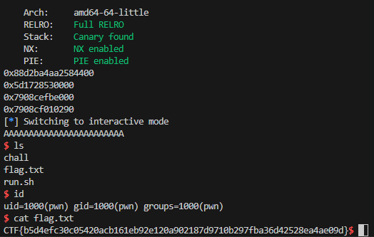 p.sendlineafter(b'$ ',b'%9$p%11$p')