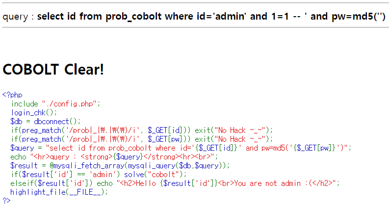 이번에는 id가 무조건 admin 이여만 통과가 가능하므로 id에 admin을 넣고