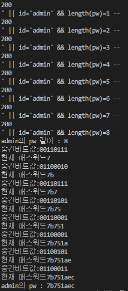 print("admin의 pw : " + find_pw_str(id="admin",pw_len=admin_len))