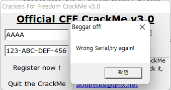 시리얼번호가 틀렸을때 나오는 Wrong Serial_try again! 이라는 문자열이 나오는데