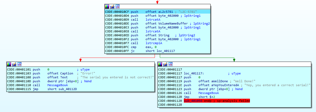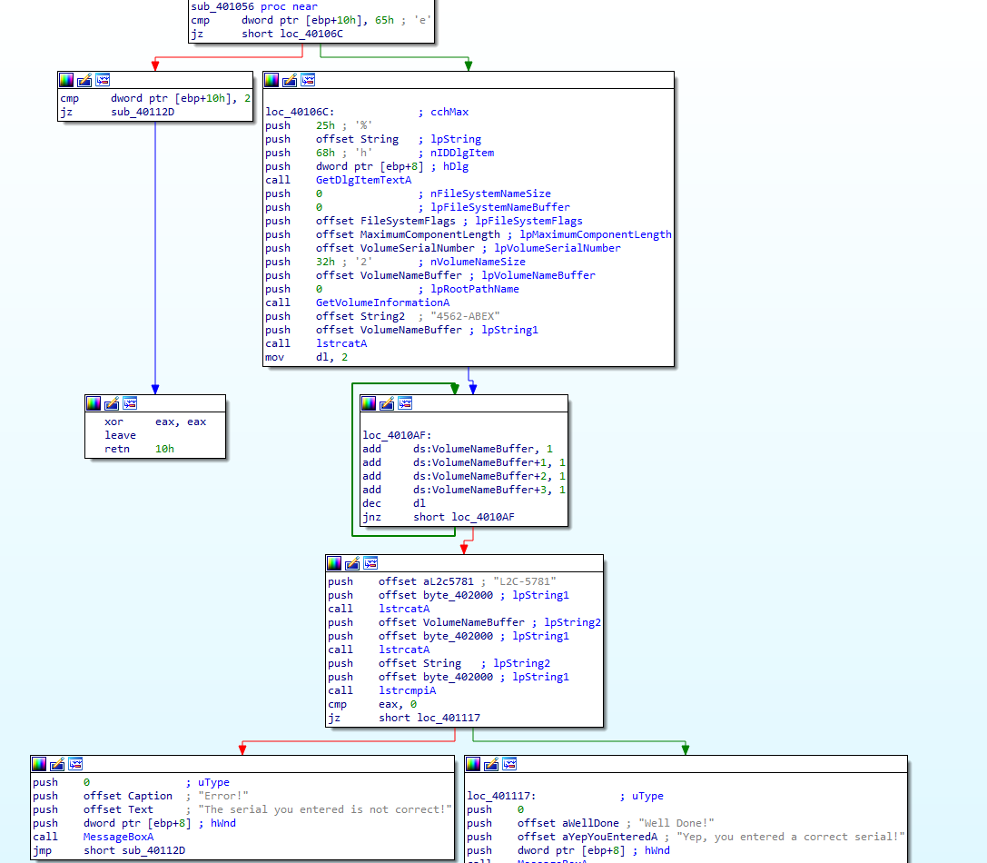 그러므로 C 드라이브 이름이 CodeEngn 일때 시리얼값은 L2C-5781EqfgEngn4562-ABEX 입니다.