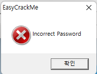 비밀번호가 틀렸을때 Incorrect Password라는 문자열이 메세지박스로 출력되었습니다.