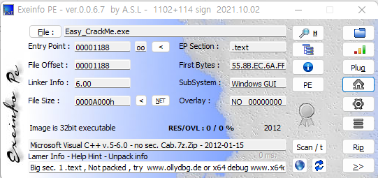 간략하게 보면 32비트 기반 실행파일이고 비주얼 C++로 작성된 프로그램이란것을 알수 있습니다.