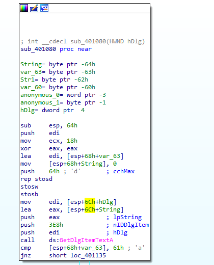 GetDlgItemTextA 함수를 호출하는것을 봤을때