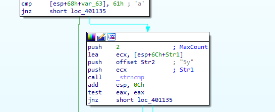 그다음 로직을 살펴보면, 5y라는 문자열과 입력한 값을 비교하는것으로 보입니다.