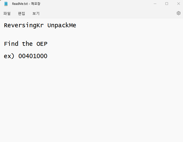 다음과 같이 프로그램의 OEP를 찾으라고 합니다.