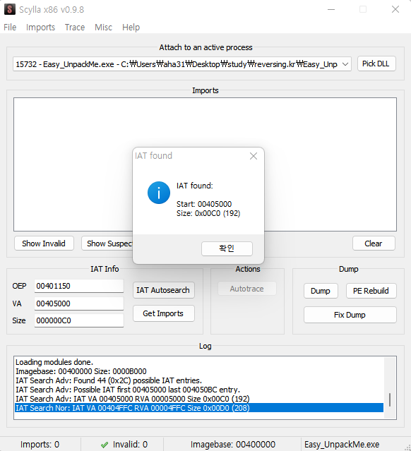 그러면 자동으로 IAT 정보가 업데이트됩니다.