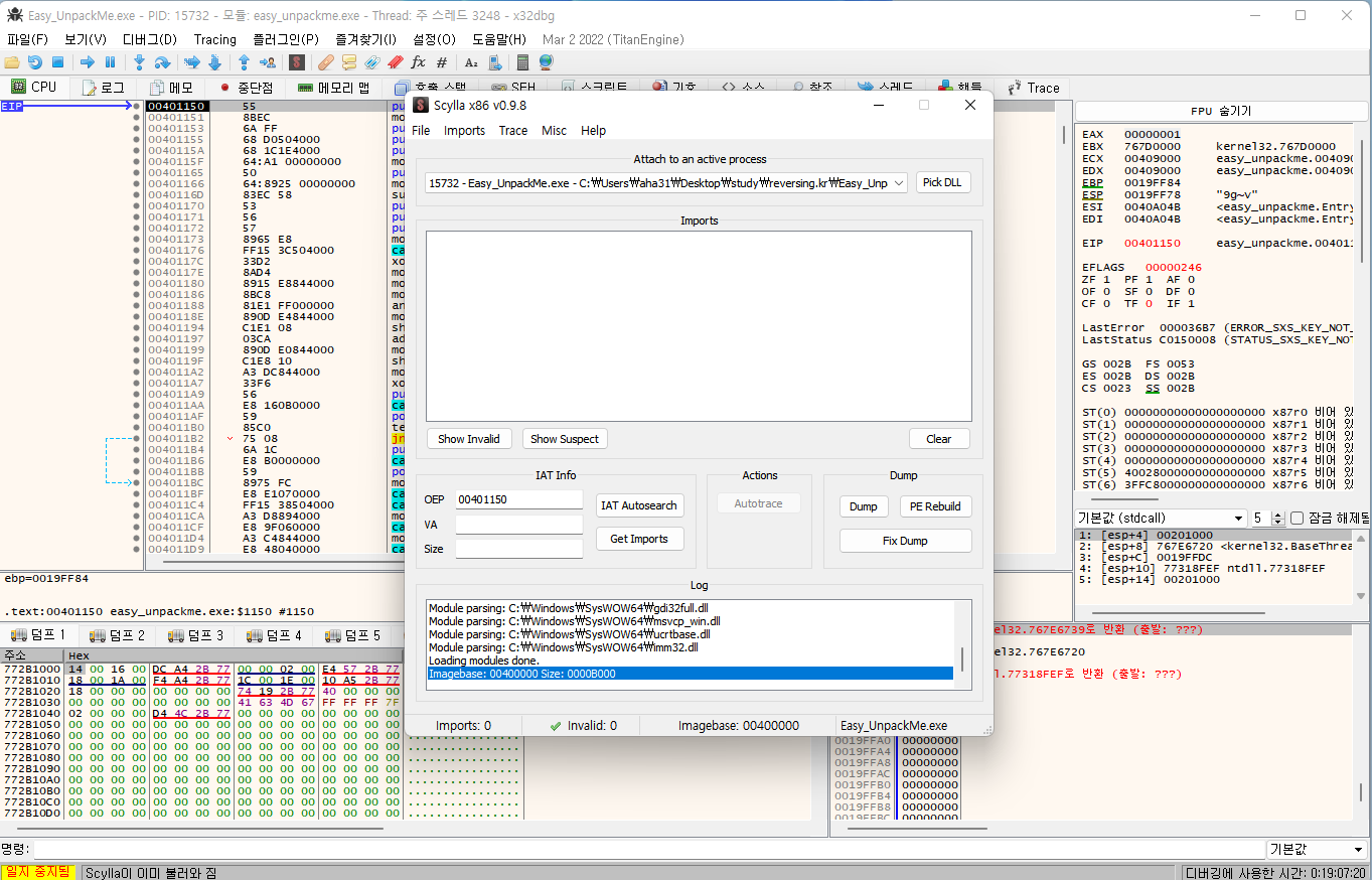 일단 OEP를 찾긴 했지만 저는 추가적으로 메모리 덤프를 통해서 OEP를 복구해보겠습니다.