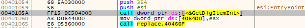 우선 GetDlgItemInt 함수가 호출되고나면 제가 입력했던 1이 eax로 반환됩니다.