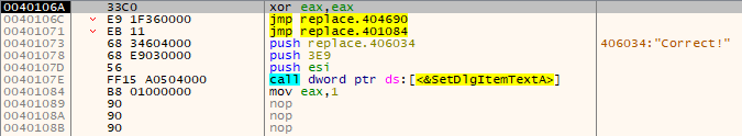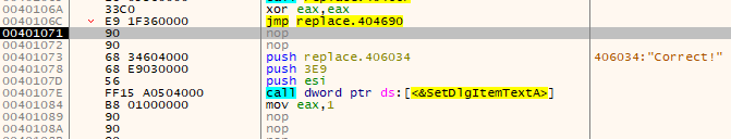 아까전에 분석한 과정을 잘생각해보면, eax에 있는 주소를 90이라는 이진코드로 바꾸는것은