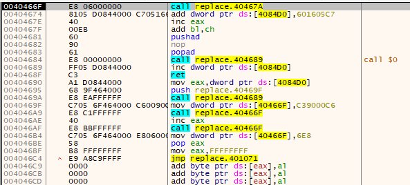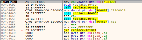 그 다음에, 40469F가 스택에 푸쉬된뒤 404689를 호출합니다.