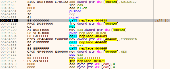 아까전에 봤었던 코드입니다. 4084D0에 601605C7을 더합니다.