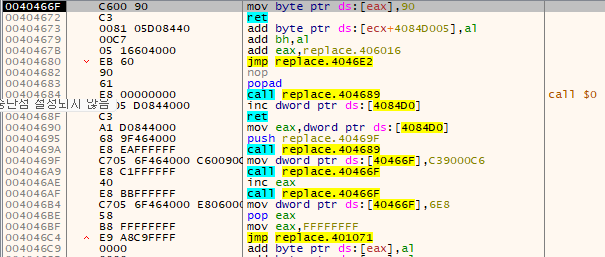 그 뒤에는 40466F 에 있는 값을 C39000C6으로 바꾸는 작업이 이루어진뒤 40466F를 푸쉬합니다.