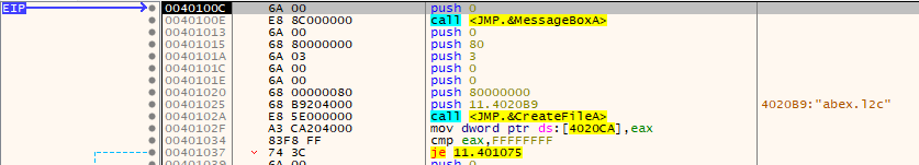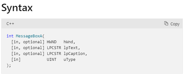 그런데 MessageBoxA 함수를 호출하는 부분을 잘 보면 스택에 인자를 하나만 푸쉬합니다.