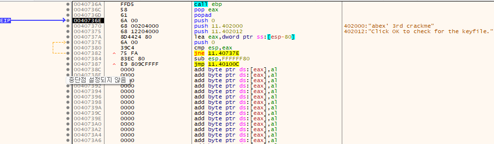 이유는 아래에 있는 jmp문으로 OEP로 가면 알수 있습니다.