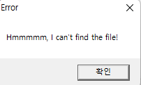 확인버튼을 누르면 파일을 찾을수 없다는 메세지박스가 나오면서 프로그램이 종료됩니다.