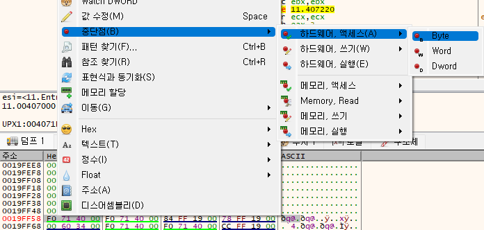 esp 주소에 하드웨어 중단점을 걸어줍니다.
