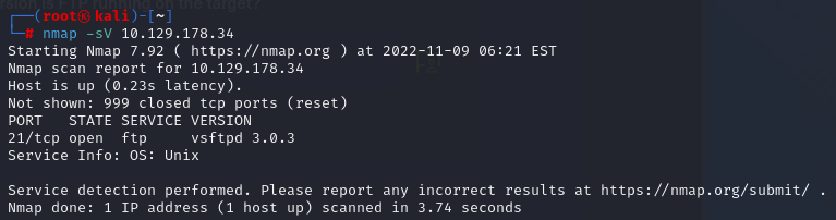 Task 5. From your scans, what version is FTP running on the target?