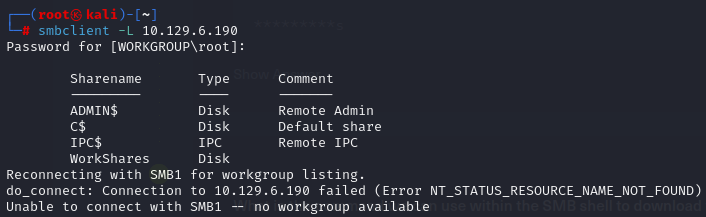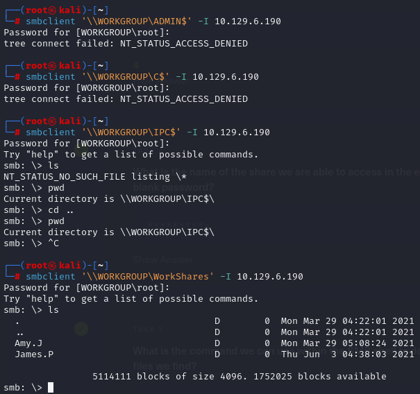 Task 6. What is the name of the share we are able to access in the end with a blank password?