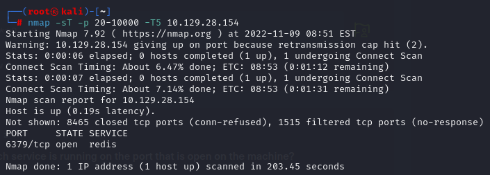 Task 2. Which service is running on the port that is open on the machine?