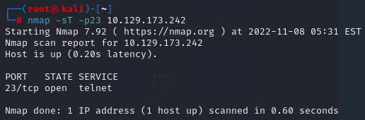 Task 7. What service do we identify on port 23/tcp during our scans?