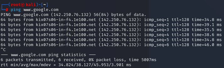 Task 4. What is the command we can use to send an ICMP echo request to test our connection to the target?